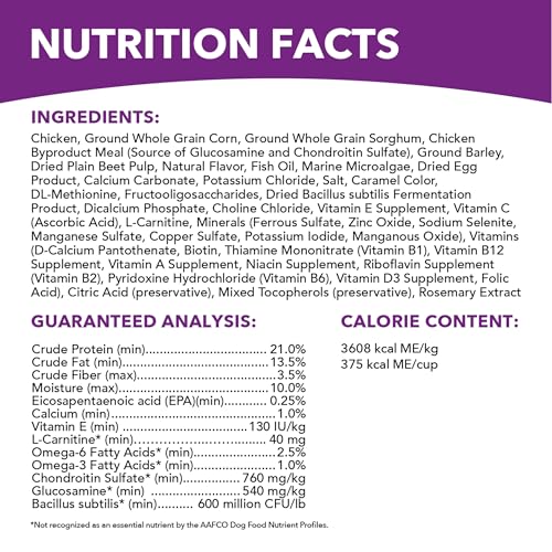 As pet parents, we all need to feel confident that we are doing the most productive for our pets. IAMS ADVANCED HEALTH Mobility Strengthen Chicken and Whole Grain Recipe dry dog food is designed with ingredients to Strengthen your dog’s whole-body health and mobility. This premium dry dog food features guaranteed live probiotics and is formulated without artificial flavors or artificial preservatives (trace amounts is also present as a result of potential cross-contact all through manufacturing). With Omega-3 fatty acid EPA and a natural source of glucosamine and chondroitin, this dry dog food supports healthy joints. The Mobility Strengthen Chicken and Whole Grain Recipe includes real chicken as the first ingredient, fish oil, and L-Carnitine. With this premium tailored recipe, you’ll be able to be confident that your dog will at all times be at their best, today and on a daily basis.