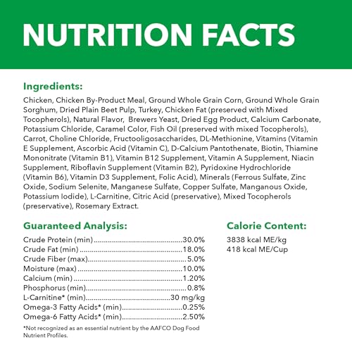 SUSTAINED ENERGY: 30% protein, 18% fat, and a blend of wholesome grains for sustained energy and optimal body condition.