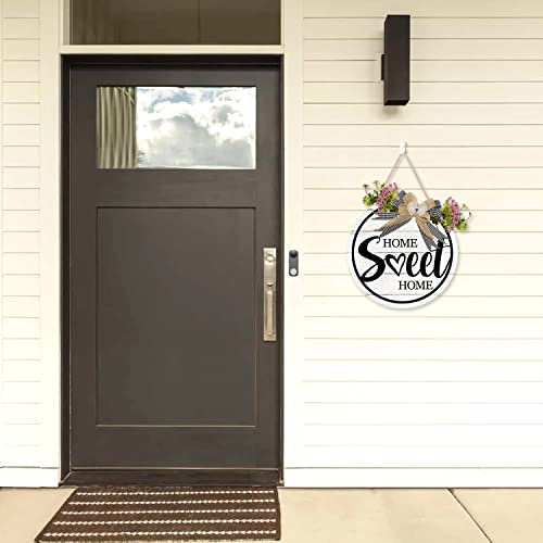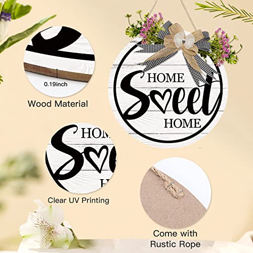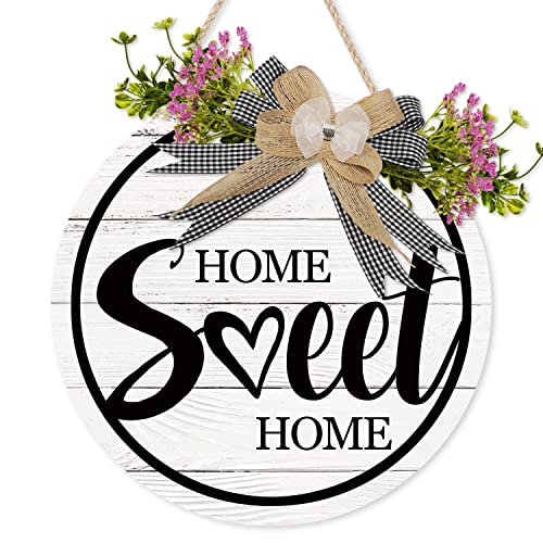 SWEET SIGN HANGING SIGN PLAQUE: The home sweet home sign made of pastoral style theme, flower pattern and bow print on white circular shaped.It will possibly create an artistic and fashionable atmosphere. A good way to bring more charming to everyone when they inter the home.