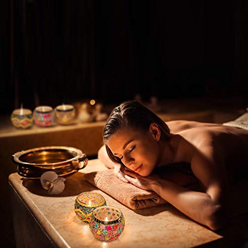 ☀【VOTIVE CANDLE HOLDERS-ALL-MATCH】: Every of the votive tealight candle holder has 2.75ʺ diameter (top) and 3.1ʺ height approximately. Works with regular tealight candles, also with small LED flameless tea lights, votive candle, pillar, tealight, floating, wick candles