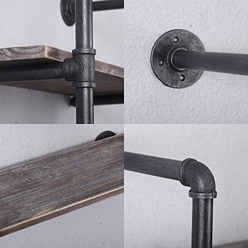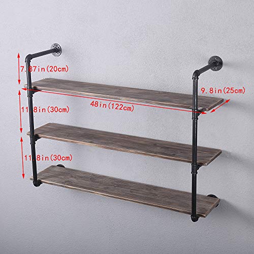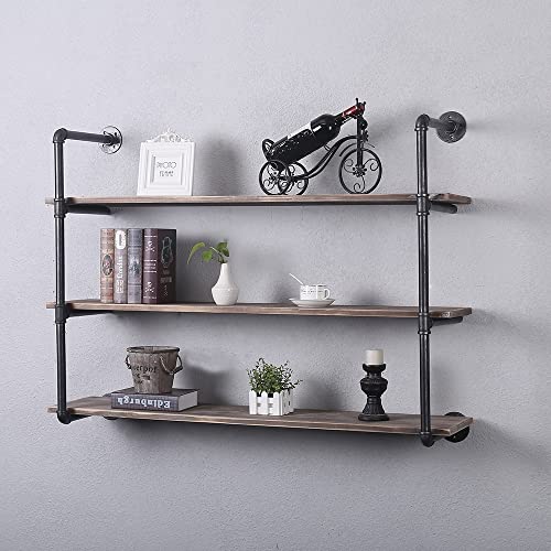 Industrial Pipe Shelving Wall Mounted,Rustic Metal Floating Shelves,Real Wood Book Shelves,Wall Shelf Bookshelf Hanging Wall Shelves Bar Shelving