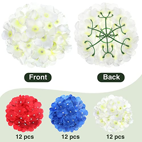 Classic Colors Combination: this package comes with 36 pieces of 4th of July fake hydrangeas in 3 colors, red, white and blue, each color has 12 pieces, a nice flower set for Memorial Day, Independence Day, or Veterans Day, this ample quantity can fulfill your decorative needs