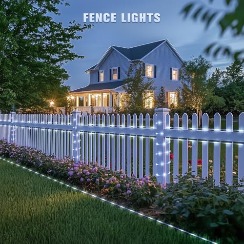 [FLEXIBLE AND WIDELY USED] The high-quality flexible and foldable clear PVC tube is cleverly matched with a copper wire solar fairy christmas light. It can easily build the shapes you wish to have, and decorate whatever you wish to have with these sparkling and magical waterproof rope lights! It is an ideal decoration for courtyards, fences, bars, weddings, trees, decks, roofs, hotels, yards, gardens, terraces, streets, commercial buildings, shopping centers, Christmas, and trampolines.
