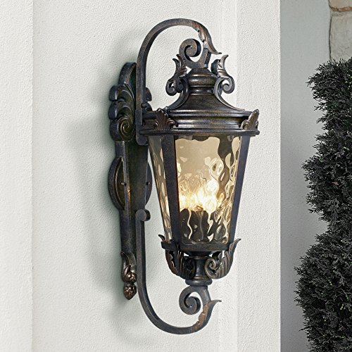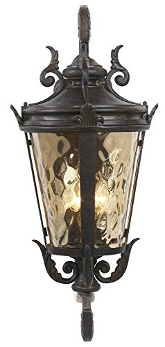 【High-Quality Out of doors Lighting】Sturdy die-cast metal construction. Veranda bronze finish. Champagne hammered glass. Double scroll arms and acanthus leaf accents. Wet location rated for Out of doors use in areas that get full exposure to rain and weather.