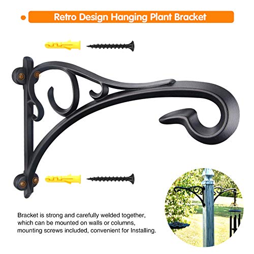 KABB Plant Hanging Bracket, Hand Forged Heavy Duty Black Iron Art Plant Hanging Hooks, Durable Rust-Resistant Wall Brackets for Planter Bird Feeder Lanterns Wind Chimes with Screws (2 Pack)