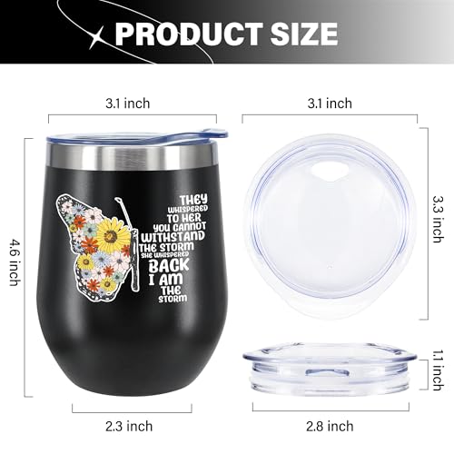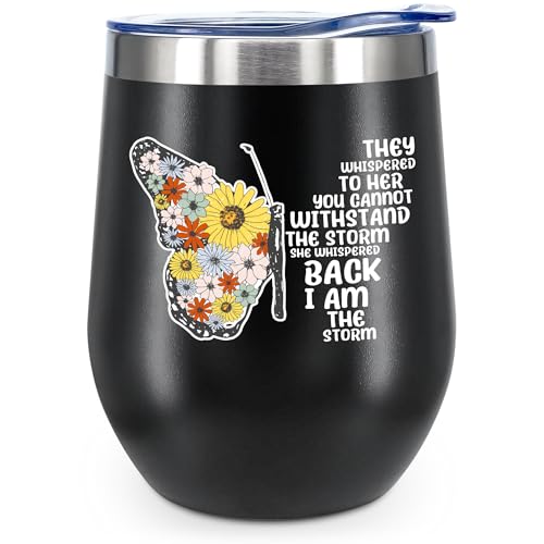 • Kaira butterfly tumbler12 oz wine tumbler with lid 188 vacuum stainless steel coffee mug gifts idea for women black  urban country home decor