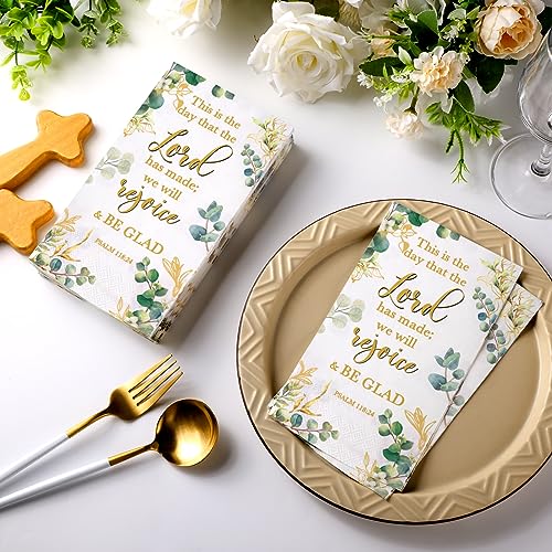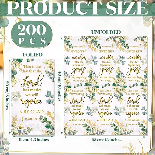 Karenhi 200 Pcs Religious Decorative Disposable Napkins 2 Ply Christian Disposable Hand Towels for Bathroom Bible Verse Paper Napkins Baptism Paper Towel Thank You Napkins for Wedding(Eucalyptus)