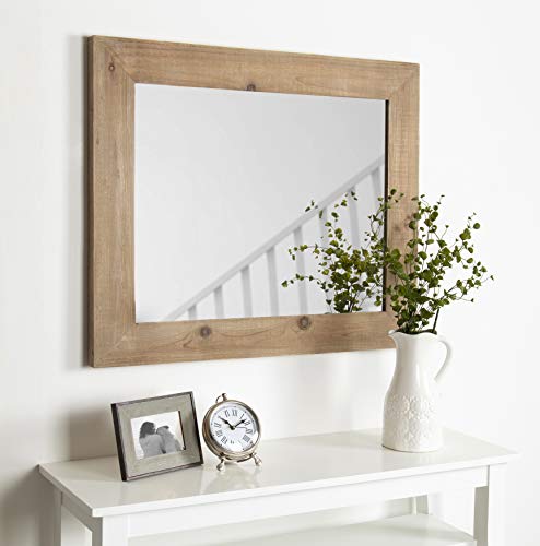 Rustic Wood-Framed Mirror: This striking 36×30 inch rectangular wall mirror is framed in a handsome 4-inch natural wood moulding, exuding rustic charm and farmhouse style.