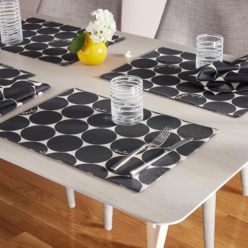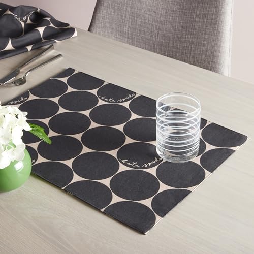 kate spade new york Joy Dot Placemats 4-Pack Set, Reversible, 100% Cotton, Machine Washable, Black/Beige, 13″x19″