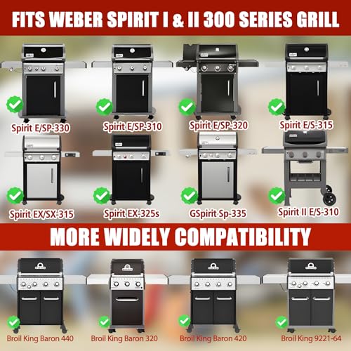 WIDE COMPATIBILITY: The Cooking griddle measures 23.4″ x 17.3″ x 1.6″ and is compatible with Spirit I & II 300 series 3-burner gas grills, for Weber Spirit E/SP-310, E/S-315, EX/SX-315, E/SP-320, E/SP-330, Spirit EX-325s, Spirit SP-335. Also fits Broil King Baron 300/400 series 2013 & newer; fits Broil King Crown 300 400 series 2012 & newer; fits Broil Mate, Sterling and Huntington Rise up Patriot 3/4/5 burner gas grills