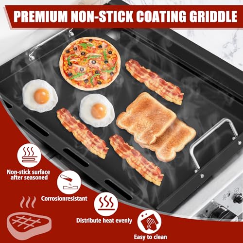 STURDY & DURABLE: The griddle for gas grill is made of durable, heavy-duty carboon steel to make sure durability. Less likely to chip or rust, lasts even longer than the original griddle