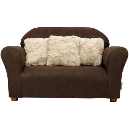 Stylish Microsuede Loveseat: Crafted with a sturdy pine frame and plush microsuede fabric in a warm brown/khaki shade, this recent loveseat offers both comfort and style for your little one’s space.