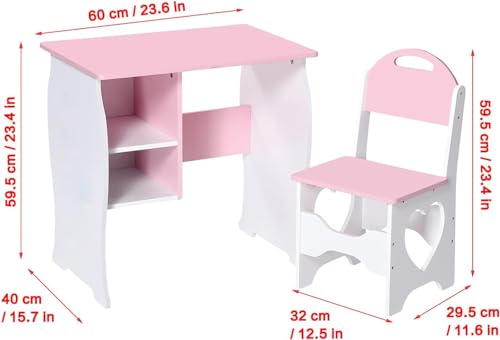 【Simple & Stylish Appearance】With the white and pink finish gives the shelf a classic and simple touch, and can fit any home style. The side of the table has a cute kitten pattern even as the chair is uniquely designed with a hollow love design on both sides. The stylish appearance is suitable for different decorative styles of bedroom or playroom. Best child height.