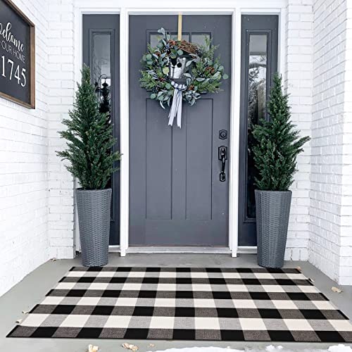 Classic Plaid Pattern: This cotton handmade braided rug includes a classic black, white, and grey buffalo check pattern, adding a chic and trendy look to elevate your farmhouse or up to date decor.