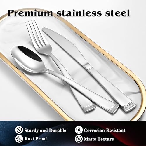 PREMIUM STAINLESS STEEL: The flatware set is made of premium stainless steel which could be very durable and rust proof. The material is sturdy ensures that silverware won’t bend.