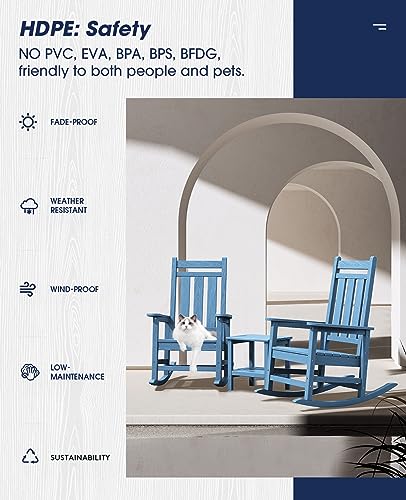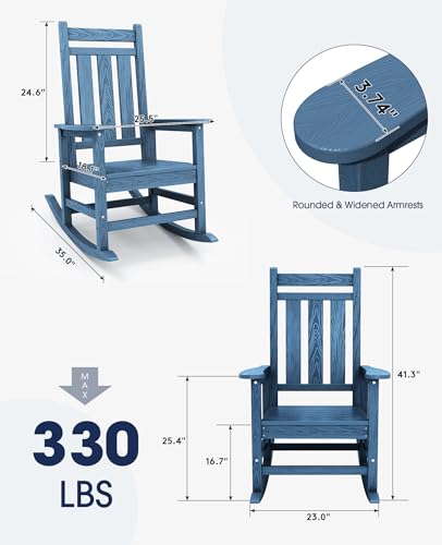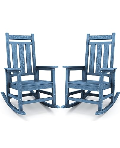 KINGYES Outdoor Patio Rocking Chair Set of 2, Weather Resistant Oversized Porch Rocker, High Back Outdoor Rocking Chair for Adult, Outdoor Rocker with 330Lbs Support(Plum Rocker)- Blue