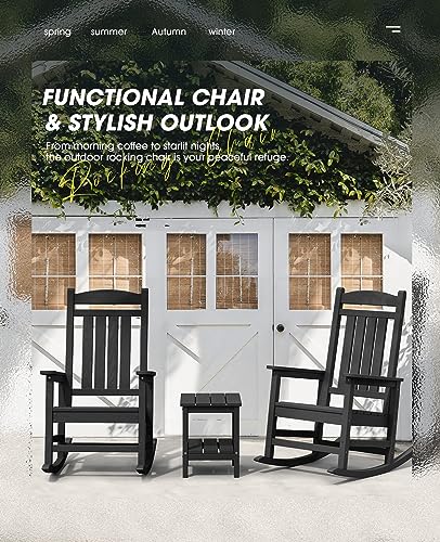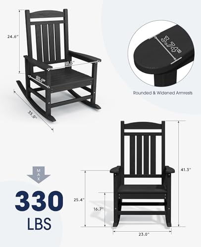 KINGYES Outdoor Rocking Chairs, HDPE All-Weather Patio Rocking Chairs High Back Porch Rocker for Adult, Black