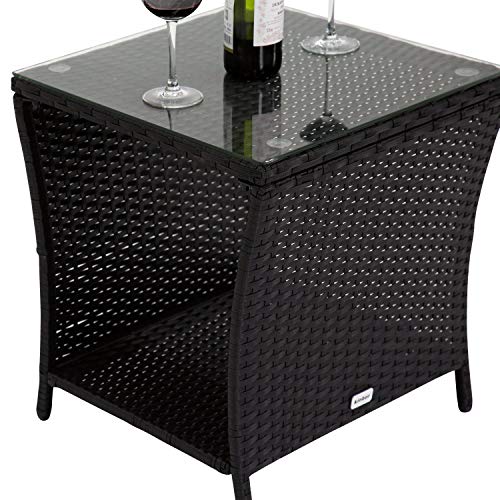 This is our “Kintness Black Out of doors Square Wicker Rattan Side Tea Table w/Glass Top Patio Furniture with Storage”. Kinbor Square Wicker Rattan Side Tea Table as the patio furniture is convenient in your Out of doors needs. It’s lightweight, so you’ll be able to put it anywhere you need indoors or outdoors. It goes great with most wicker furniture and provides you comfort and convenience. Featured with a useful lower table, you’ll be able to store your magazines or clutter. With a 5mm glass top, the side table is best possible for serving coffee, wine, snacks and fruits. This table furniture is your ideal companion to beef up your quality of life.