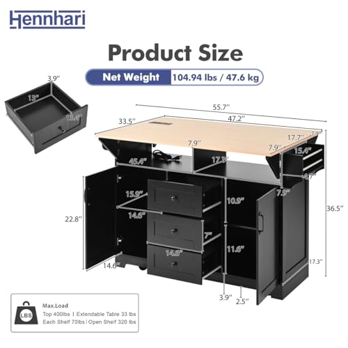 [QUALITY CRAFTSMANSHIP] Our kitchen cart is constructed with CARB Phase II certified MDF boards, featuring a sturdy structure and middle tabletop bearing capacity of up to 400 lbs. We prioritize your well-being and health. The table features a durable laminate finish and the exquisite sealing process gives the kitchen island a waterproof surface and smooth texture, making it long-lasting.