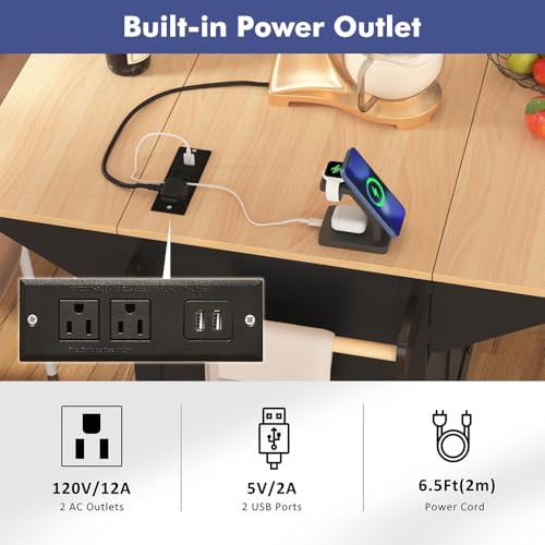 [CONVENIENT CHARGING STATION] This elegantly designed kitchen cart also includes a sophisticated built-in charging station, featuring 3 AC outlets and 2 USB ports to effortlessly meet your entire kitchen appliance power requirements. You’ll conveniently charge your coffee maker, juicer, and toaster on the countertop of this kitchen storage island.