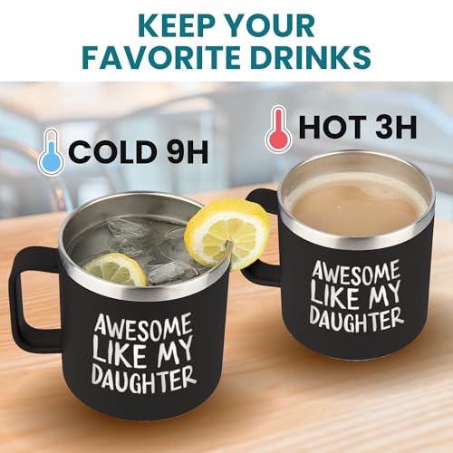 LASER ETCHED DESIGN – Engineered to keep dad’s beverages at the perfect temperature, this Black tumbler offers 3 hours of heat retention and over 9 hours of cooling. It’s a sturdy companion for any dad, built with double-wall insulation and a care for and crafted from 18/8 food-grade stainless steel. Tagged as dad birthday gift ideas and fathers day mug, this Dad Mug from Daughter is practical yet stylish.
