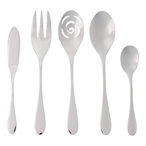 COMPLETE SET FOR ANY OCCASION – This set includes 8 dinner knives, 8 dinner forks, 8 salad/dessert forks, 8 tablespoons, 8 teaspoons, in addition to a serving spoon, slotted spoon, meat fork, butter knife and sugar spoon. It is perfect for formal dinners or casual meals with friends and family.Forks feature beveled tines for additional cutting power