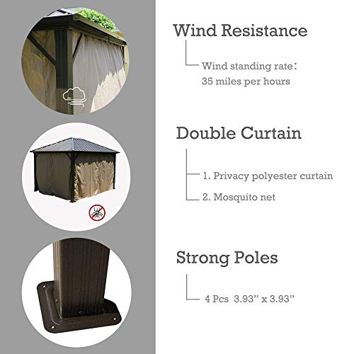 This item is built for stability, with permanent aluminum, light non-rusting material that ensures your investment lasts for a life-time! The patio gazebo provides a shaded space for relaxing by the pool throughout hot summer days, in addition to a haven for family and friends to gather for games and conversation. If you live in part of the country that suffers from mosquitoes, the net sidewall ensures a bug-free and pleasant dining experience.