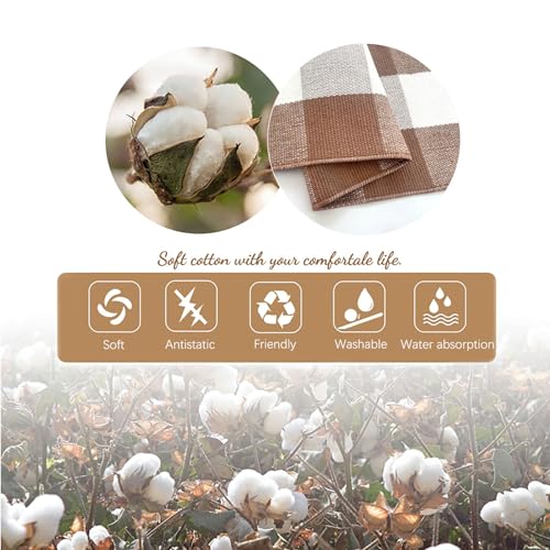 • KOZYFLY Buffalo Plaid Area Rugs 275×43 Inches Coffee and White Checkered Rug Washable Front Door Mat Hand Woven Cotton Outdoor Rug Small Rug for Front Porch Kitchen Entryway Patio Bathroom