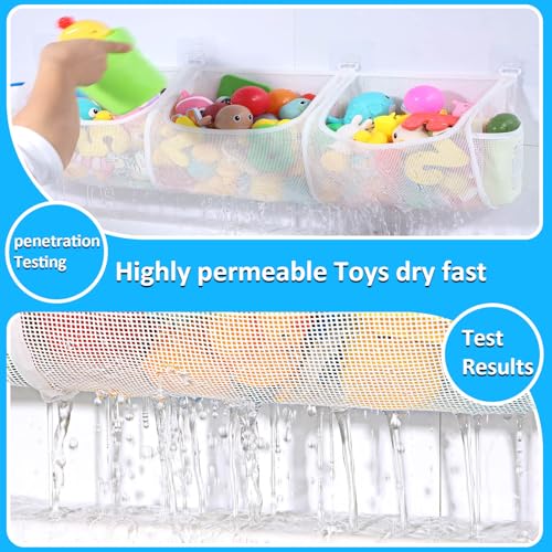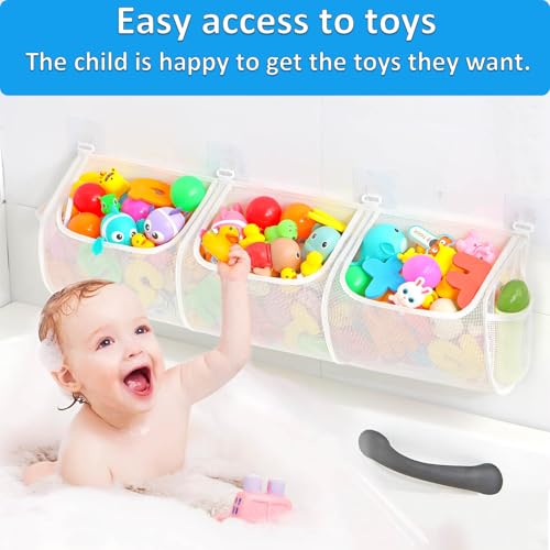 Enhanced Organization: With three spacious compartments, our shower toy holder provides triple the storage capacity. bath toy holder for bathtubIt helps categorize and organize bath toys, bath toy net making it easier for kids to find their toys and parents to care for cleanliness.