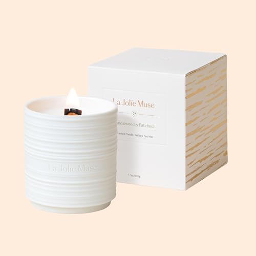 • LA JOLIE MUSE Sandalwood Patchouli Candle Wood Wicked Candles Candles for Home Scented Natural Soy Candles Clean Burn Candle 50 Hours
