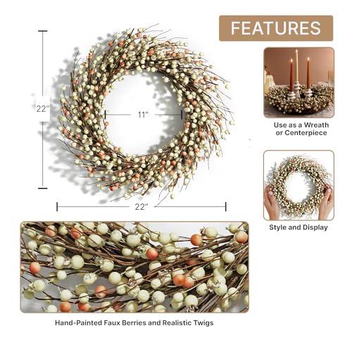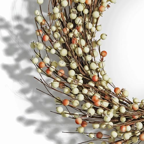 • LampLust Wreaths for Front Door 22 Inch Grapevine Wreath with Cream Pip Berries Farmhouse Home Decor Spring Wreaths for Indoor Outdoor Farmhouse Wall Decor Year Round for All Seasons