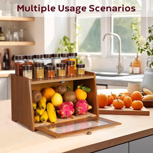 NO MORE CLUTTER – Free cabinet space! The countertop bamboo bread box 15.7″ x 9.4″ x 9.6″ with a top design helps store items to keep your counters less cluttered!