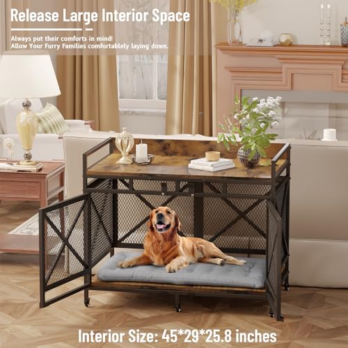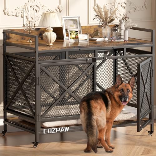 🐶【Furniture-Taste Crate】CozPaw Premium dog crate furniture features generous picket platform can serving as either an end table or coffee table, providing ample house for displaying ornamental accents, organizing pet stuffs, books or keys, and even serving refreshments. Thoughtfully guardrail effectively prevents accidental spills or pieces from falling off. Durable picket in a country brown finish integrates a novel vintage-inspired design, superbly complement your own home decor.