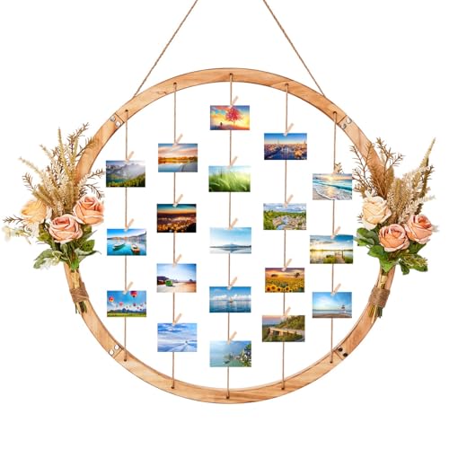 Exquisite Floral Frame: MONT PLEASANT presents an enchanting 23.62″ round picture frame adorned with vibrant artificial flowers, seamlessly blending natural good looks with brand new design. Crafted from premium pine wood, this frame offers rustic charm and longevity.