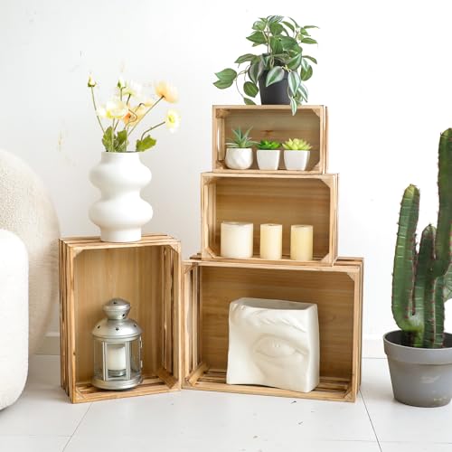MULTI-FUNCTIONAL BOXES: These nesting crates are stackable and nest into one some other for simple storage. The cutout handles cause them to easy to carry around. These wood storage boxes are perfect for toys, fruits or craft supplies. The varied sizes offer more than one choices for holding cushions, bedding, towels, toiletries and more.
