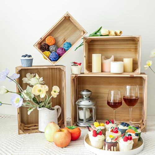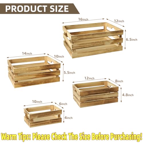 4 SIZES WOODEN CRATES: These versatile wood crates come in 4 different sizes, namely about X Large: 16”x 12″ x 6.5”, Large: 14”x 10”x 5.5”, Medium: 12”x 8” x 4.75”, Small: 10”x 6” x 4”. (Warm Tips: Please check the size before purchasing!)