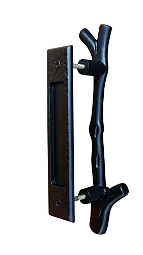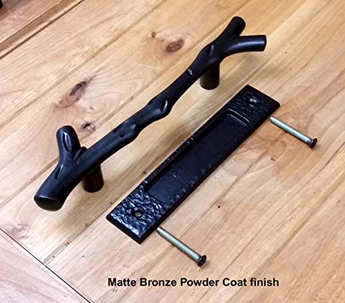 A new and exclusive design. Harmonizing nature and your home. This unique rustic door pull and flush pull set adds a very distinct accent to your barn door or sliding door. Installation: Easy installation, just drill two holes and screw them on. Includes two M8 flat head machine screws, phillips drive, 2 1/2″ long. Can also be attached to doors up to 1 3/4″ thick. To be had in Matte Bronze or Black powder coat finishes. We also sell the Flush Pull one at a time (see SKU: DP-FLUSH-LARGE-MB)