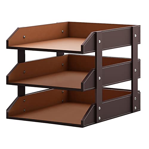 • Leather Desk Organizer Thipoten 3 Tier Stackable Letter Tray Holder for Office Supplies Paper File Magazine Perfect Office Organization for Desktop Brown 3Tiers
