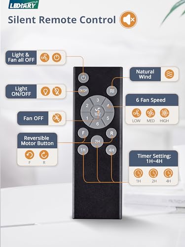 Simple Remote Keep watch over: The silent Remote operates without any beeping, ensuring quiet convenience without disturbing your family. Easily take care of 5 key features with the remote: 6 wind speeds, reversible mode, 1/2/4-hour timer, natural breeze mode and Keep watch over the fan or light one at a time, provides remarkable convenience