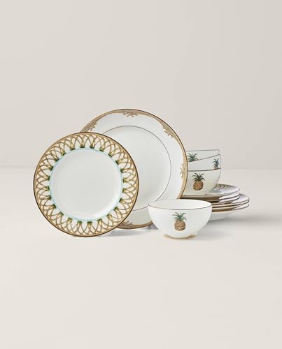 Experience the romance of out of the country shuttle and convey exotic adventures to life with British Colonial dinnerware. It warmly welcomes family members to the table with a standard weave design inspired by wind-bowed bamboo shoots and is decorated with tropical pops within the type of lush pineapples. Microwave- and dishwasher-protected porcelain with gold rims.