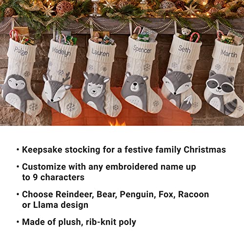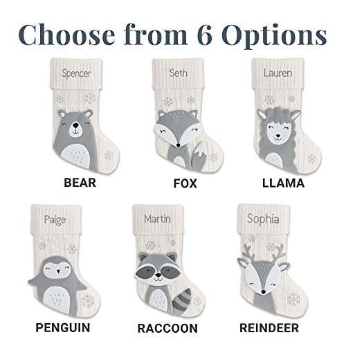 UNIQUELY PERSONALIZED: Hang it high! Select the Reindeer, Bear, Penguin, Fox, Raccoon or Llama design. Customize every stocking with any embroidered name as much as 9 characters.