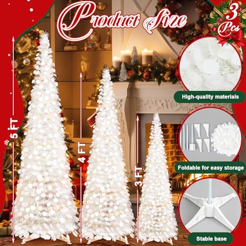3 Assorted Sizes: you’re going to receive 3 pieces of tinsel Christmas trees in 3 different sizes, including 1 about 3 feet, 1 about 4 feet, 1 about 5 feet; These collapsible Christmas trees can make stronger the festive atmosphere, ideal for placing next to the fireplace, helping you enjoy the warmth of circle of relatives gatherings in the chilly winter season