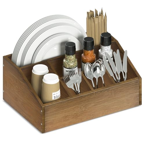Efficient Paper Plate & Utensil Organizer: Our Lille Home bamboo paper plate dispenser features 6 spacious compartments to neatly store plates, cups, napkins, forks, spoons, straws, and condiments. Keep your kitchen organized whilst saving space in cabinets or drawers with easy get right of entry to to the whole thing you want.