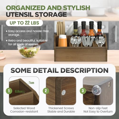 Stylish Rustic Decor for Your Kitchen: With its natural bamboo finish, this utensil caddy blends effortlessly into both farmhouse and up to date kitchens. Its elegant appearance adds a rustic charm in your kitchen, dining room, or buffet table, whilst providing practical organization.