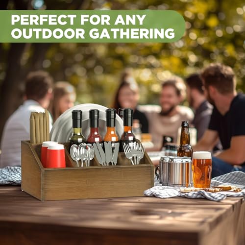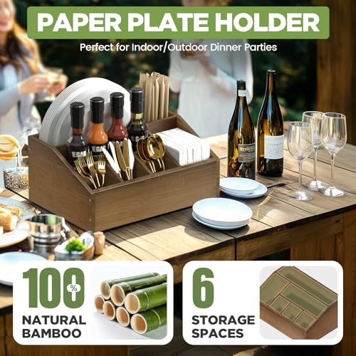 Versatile & Portable for Each and every Occasion: Perfect for BBQs, picnics, camping, parties, and buffets, this tall bamboo organizer is easy to carry and transport. Whether indoors or outdoors, it offers a convenient and stylish option to store utensils and disposable plates, keeping the whole thing within reach.