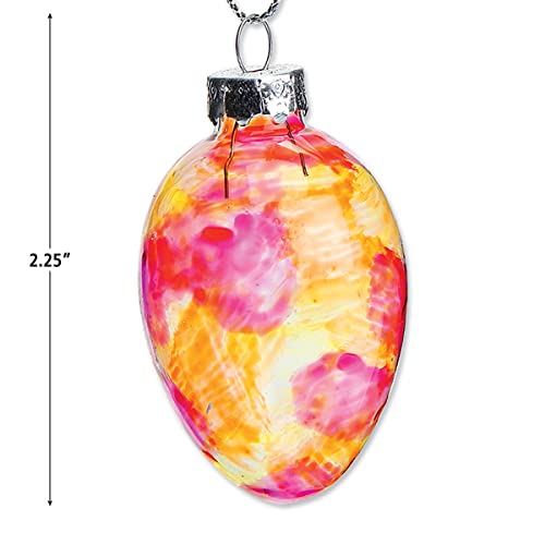 Our egg shaped holiday ornaments are lovingly crafted from prime quality materials and are made to last for plenty of Easter holidays to come. This set features 12 glass eggs decorated in elegant swirls of stained glass with a view to sparkle and shine in an assortment of springtime shades, whether hanging from a tree or placed in a crystal bowl as a stunning holiday centerpiece.