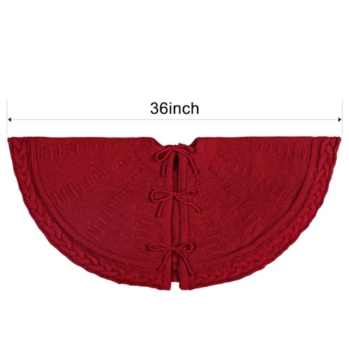 [Merry Christmas] Classic cable knit handcrafted Christmas collection with rib and garter knit pattern, this burgundy tree skirt is 36 inches featuring a natural wine red color. Unique soft touch and authentic knitting, dress your house décor with warm and cozy vibes.