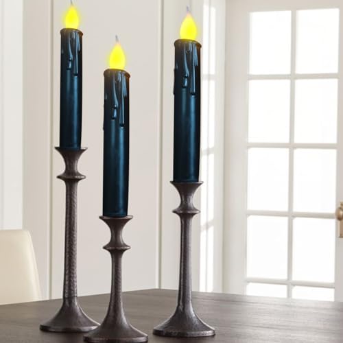 Christmas Decor wax black Battery Operated Taper Candles with timer taper candles flickering realistic 6 hour timer,halloween Decor wax black tapered candles battery operated are powered by batteries,timer taper candles flickering realistic 6 hour timer making them friendly. Xmas battery operated taper candle flickering decoration Christmas tree,Christmas wax black black drip led candle can automatically turn on and off,Chirsmtas black battery operated candlesticks easily replaceable, ensuring your battery powered taper candles stay illuminated for future years, halloween battery operated taper candles allows use tblack real wax flameless taper candles virtually indoors or outdoors