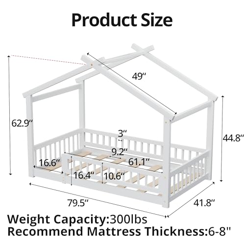 【Easy Assembly】Overall Product Dimension: 79.5”L x 41.8”W x 62.9”H. Our montessori floor bed is easy to assemble and comes with an entire set of hardware and an instruction manual.