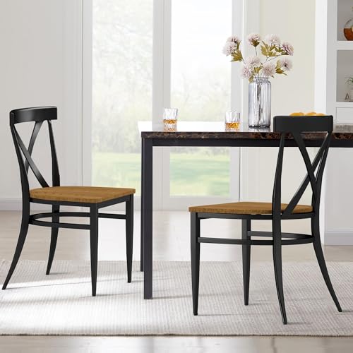 Sturdy Dining Chairs: Made from thick natural wooden seat and strong iron legs and back, super heavy duty and built to be long-lasting. No-slip cover at the leg feet for better safety and stablity; holds as much as 450lbs.